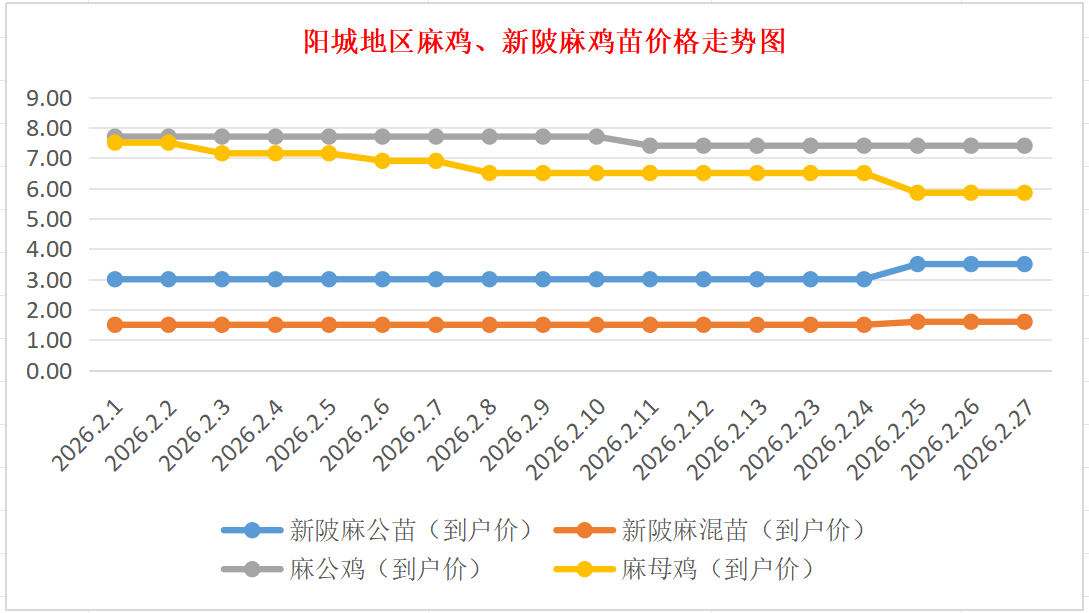 阳城地区麻鸡、新陂麻鸡苗价格走势图(来源:鸡病专业网)