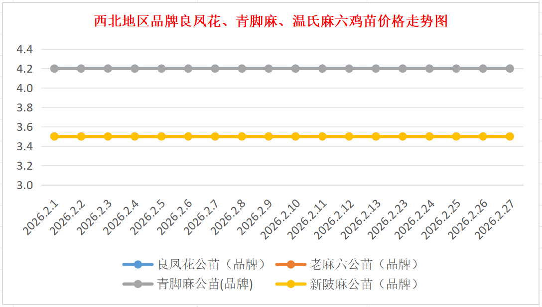 品牌新陂麻:价格稳定,到户价公苗4.50元/羽,稳。