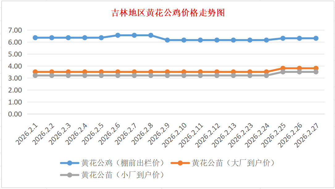 2月27日吉林黄花公鸡、鸡苗价格行情