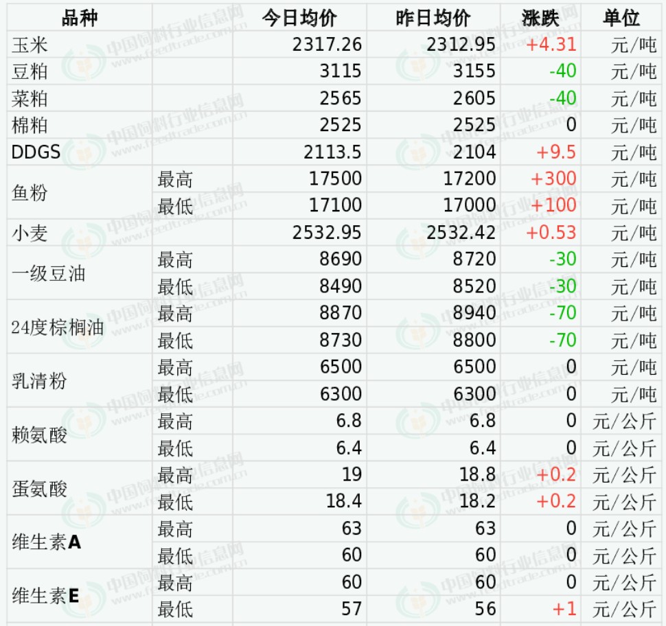外盘方面价格坚挺上涨,其中秘鲁新季超级蒸汽鱼粉预售参考价格为CNF2350美元/吨,上涨50美元/吨。国内进口鱼粉市场,部分终端进行补库,持货商挺价,当前秘鲁超级蒸汽鱼粉价格集中在17100-17500元,上涨了100-300元。短期鱼粉偏强走势继续。