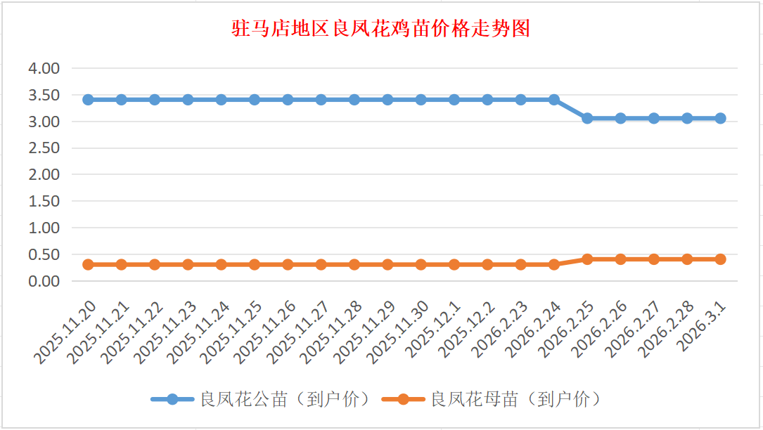 良凤花鸡苗:价格稳定,公苗到户价2.80-3.30元/羽,母苗到户价0.30-0.50元/羽,稳。