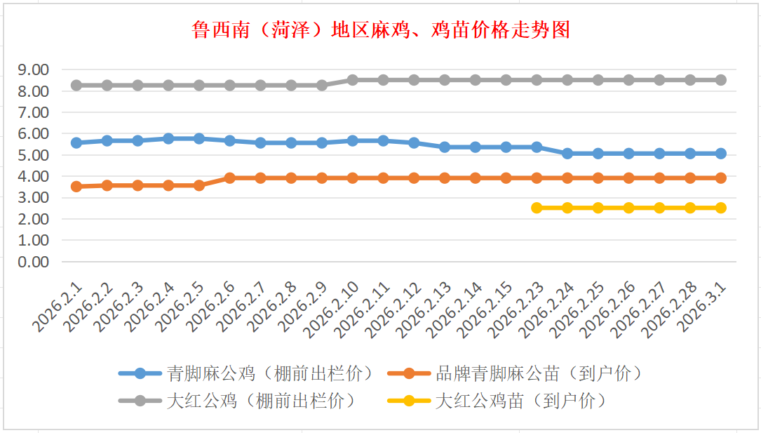 3月1日鲁西南(菏泽)地区麻鸡、鸡苗价格行情