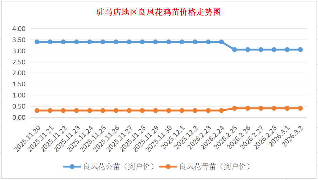 良凤花鸡苗:价格稳定,公苗到户价2.80-3.30元/羽,母苗到户价0.30-0.50元/羽,稳。