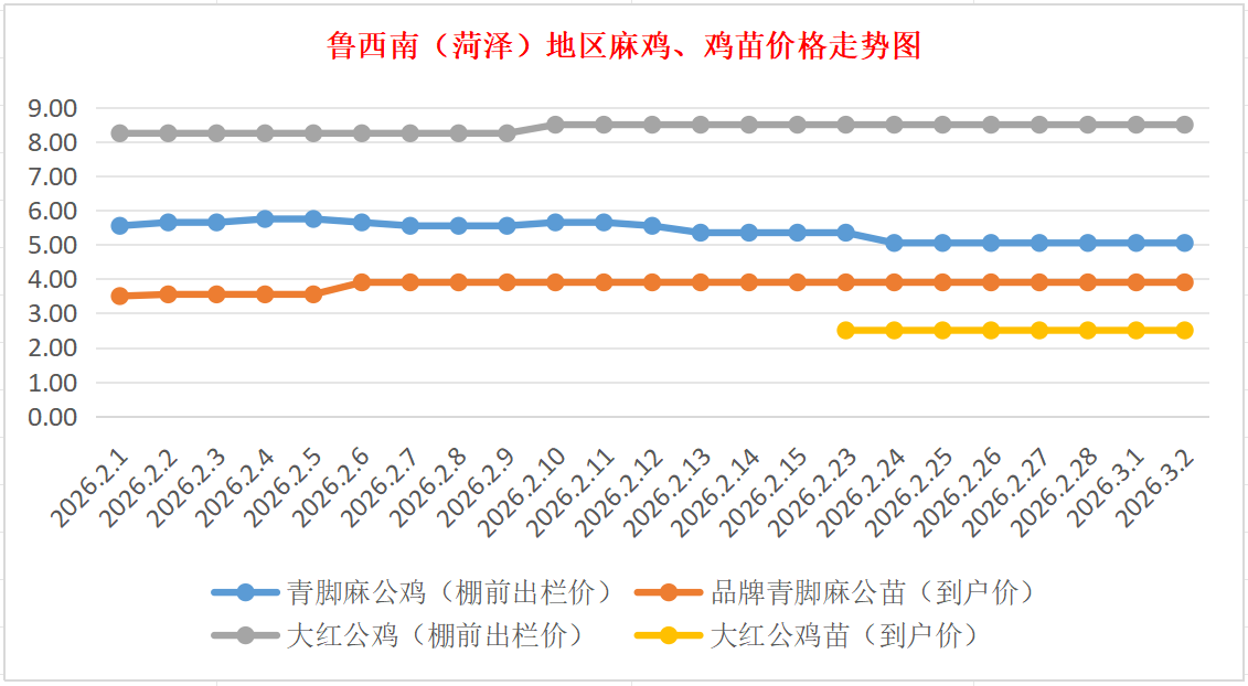 菏泽地区麻鸡、鸡苗价格走势图(来源:鸡病专业网)
