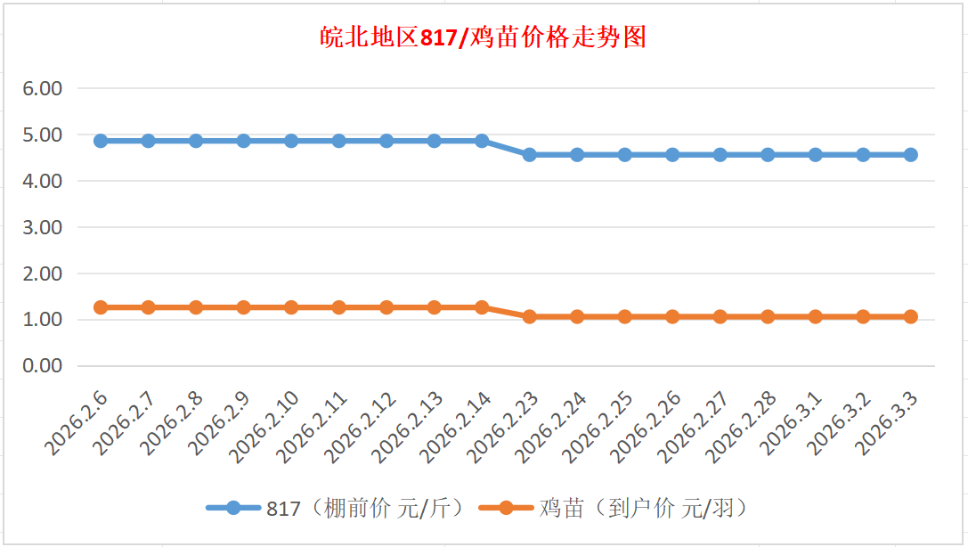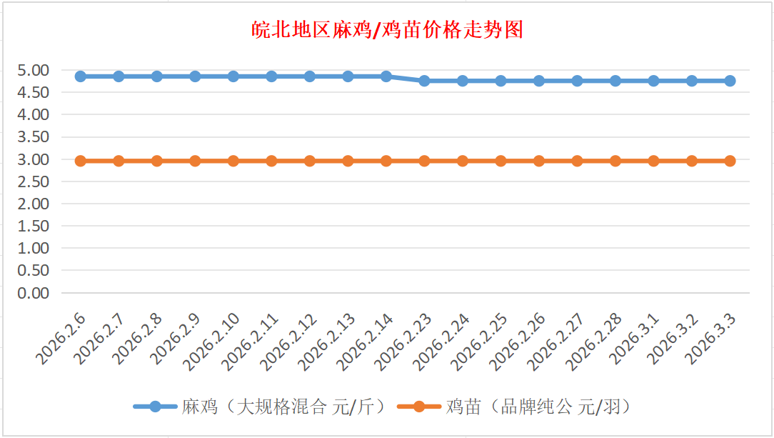 鸡病专业网独家信息:2026年3月3日皖北地区817-麻鸡行情最新走势