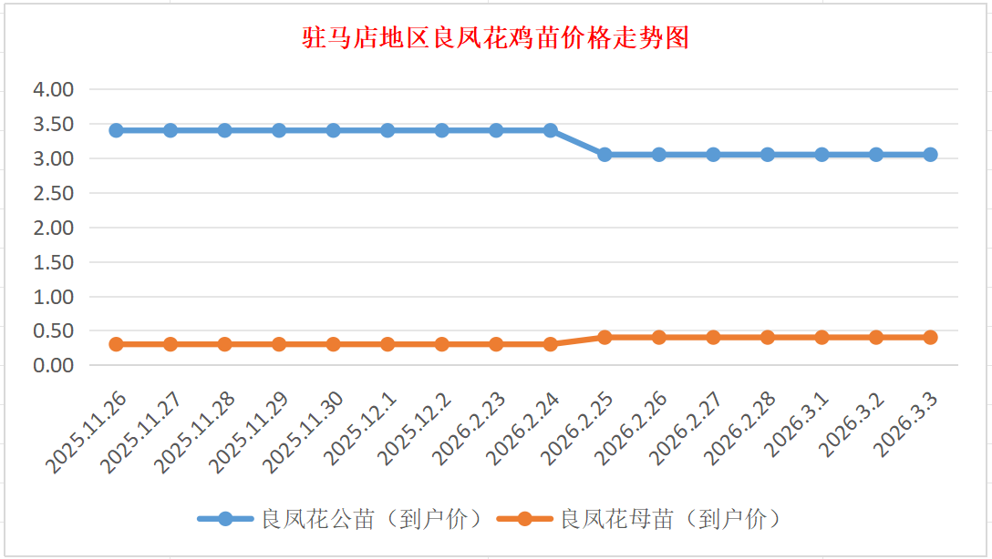 良凤花鸡苗:价格稳定,公苗到户价2.80-3.30元/羽,母苗到户价0.30-0.50元/羽,稳。