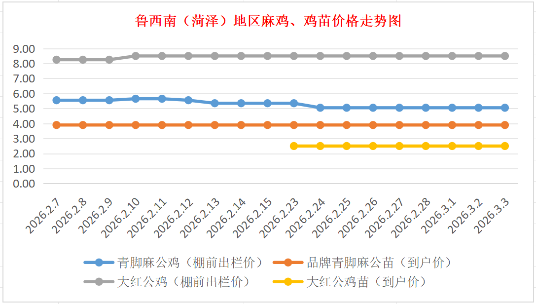 品牌青脚麻公苗:价格稳定,主流到户价3.80-4.00元/羽,稳。