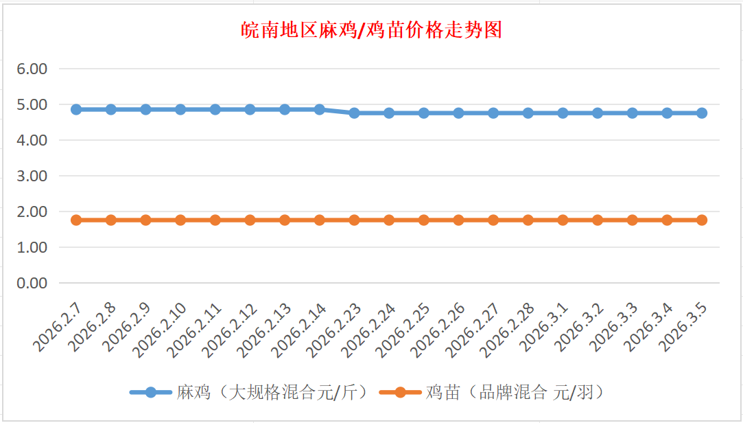 鸡病专业网独家信息:2026年3月5日皖南地区817-麻鸡行情最新走势