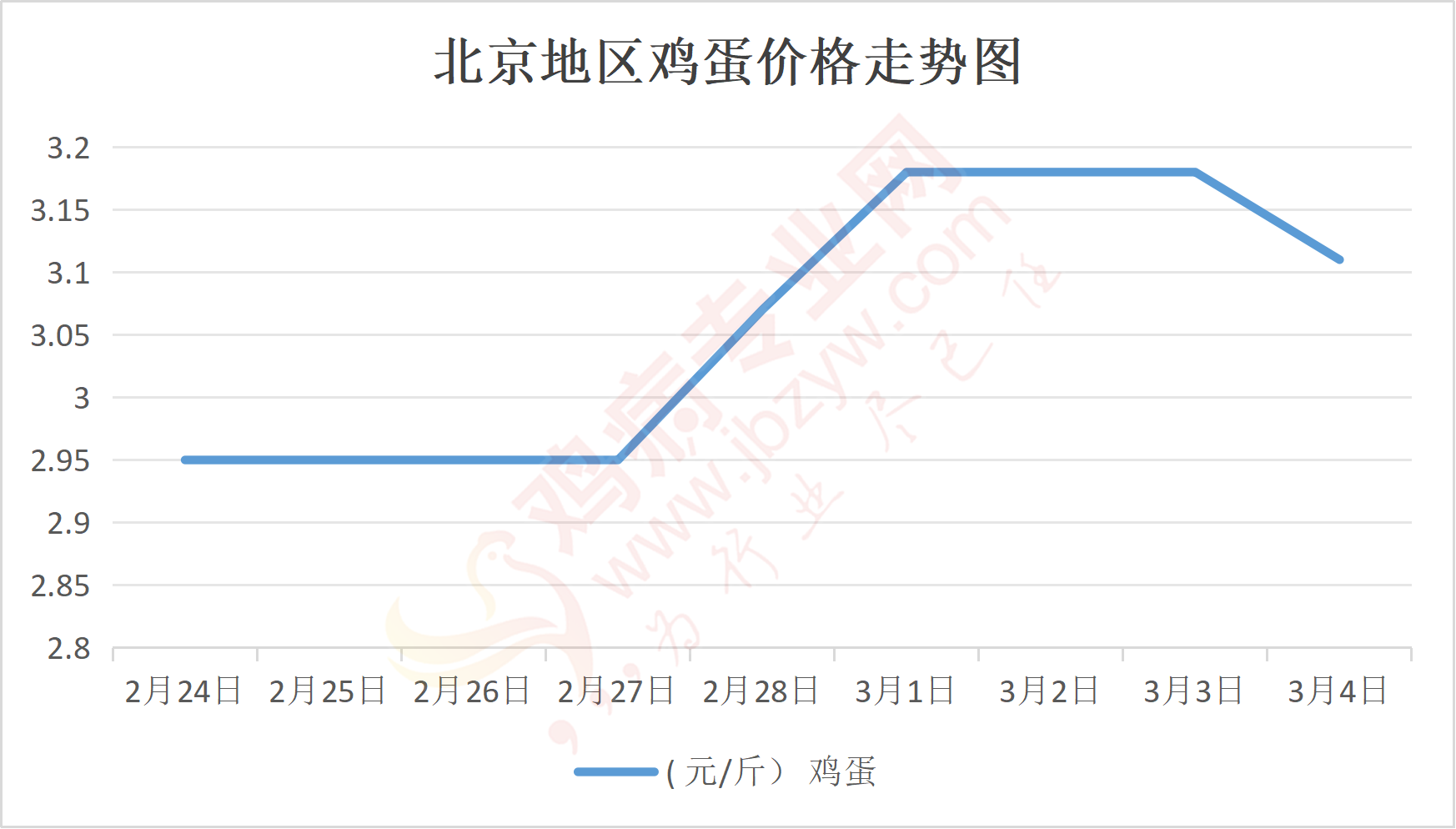 鸡病专业网消息:3月4日,北京各大市场鸡蛋价格落3元,主流参考价137元/44斤,石门,新发地、回龙观等主流批发价137元/44斤,落;大洋路鸡蛋主流批发价格137元/44斤,落,按质高低价均有,到车6台,到货正常,成交灵活,走货一般。