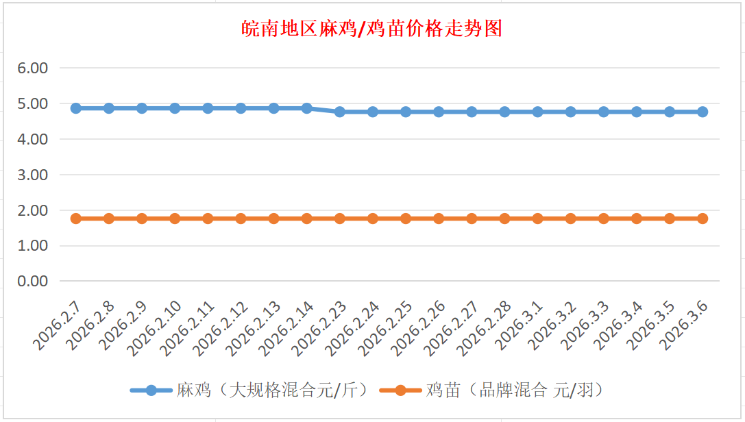 鸡病专业网独家信息:2026年3月6日皖南地区817-麻鸡行情最新走势