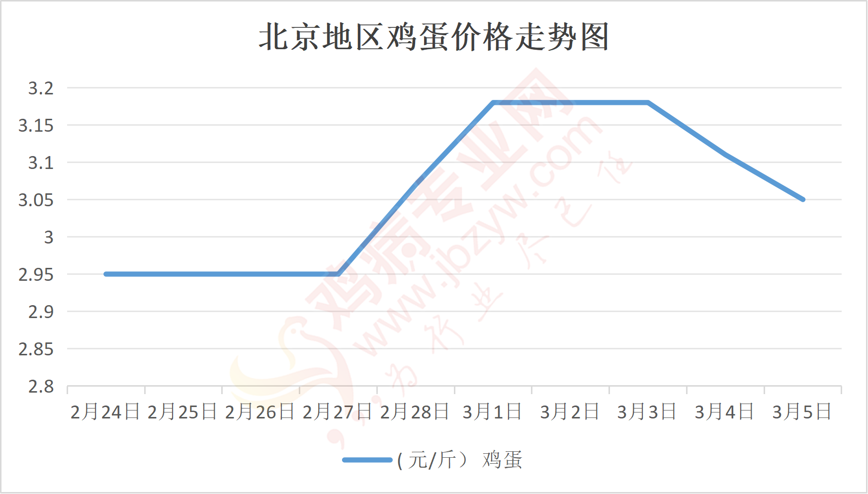 鸡病专业网消息:3月5日,北京各大市场鸡蛋价格落3元,主流参考价134元/44斤,石门,新发地、回龙观等主流批发价134元/44斤,落;大洋路鸡蛋主流批发价格134元/44斤,落,按质高低价均有,到车3台,到货正常,成交灵活,走货一般。
