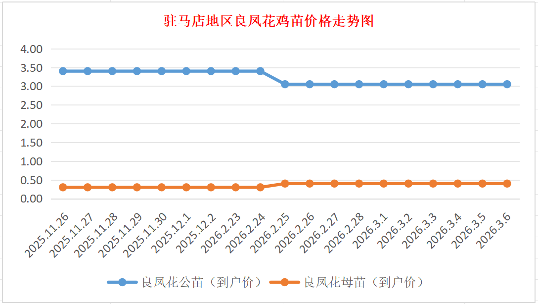 良凤花鸡苗:价格稳定,公苗到户价2.80-3.30元/羽,母苗到户价0.30-0.50元/羽,稳。