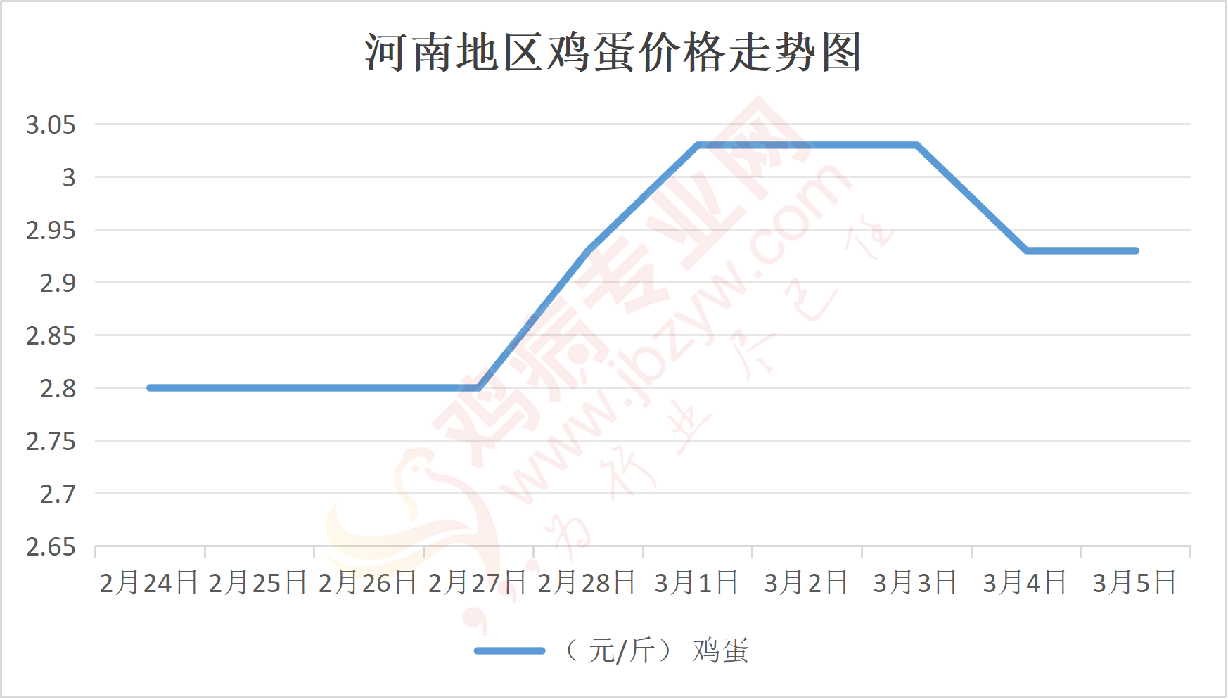 鸡病专业网消息:3月5日,河南郑州鸡蛋2.95元/斤,稳;新密鸡蛋2.95元/斤,稳;荥阳鸡蛋2.95元/斤,稳;中牟鸡蛋2.95元/斤,稳;周口鸡蛋2.9元/斤,稳;商丘鸡蛋87-88元/30斤,稳;鹤壁鸡蛋2.95元/斤,稳;汝州鸡蛋2.9元/斤,稳;开封鸡蛋88元/30斤,稳;漯河鸡蛋2.9元/斤,稳;漯河临颍鸡蛋2.9元/斤,稳;许昌鸡蛋2.9元/斤,稳;南阳鸡蛋2.9元/斤,稳;南阳邓州鸡蛋2.9元/斤,稳;新乡鸡蛋2.9元/斤,稳;安阳鸡蛋2.9元/斤,稳;新郑鸡蛋2.95元/斤,稳;登封鸡蛋2.95元/斤,稳;平顶山鸡蛋2.9元/斤,稳;驻马店鸡蛋2.9元/斤,稳;三门峡鸡蛋2.9元/斤,稳;焦作鸡蛋2.9元/斤,稳;信阳鸡蛋2.9元/斤,稳;濮阳鸡蛋2.9元/斤,稳。