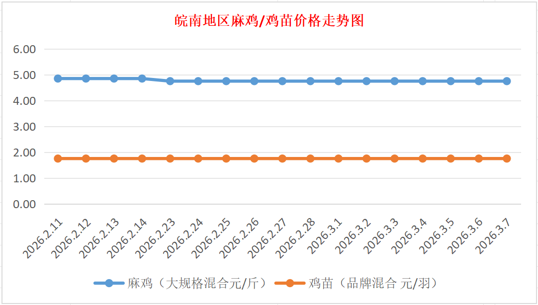 鸡病专业网独家信息:2026年3月7日皖南地区817-麻鸡行情最新走势