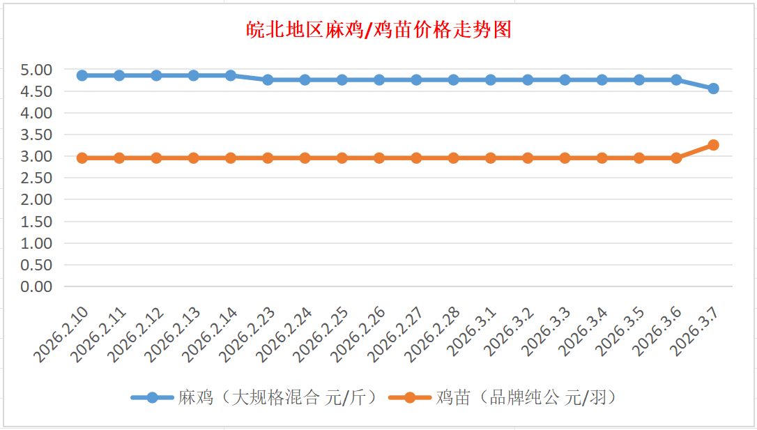 鸡病专业网独家信息:2026年3月7日皖北地区817-麻鸡行情最新走势