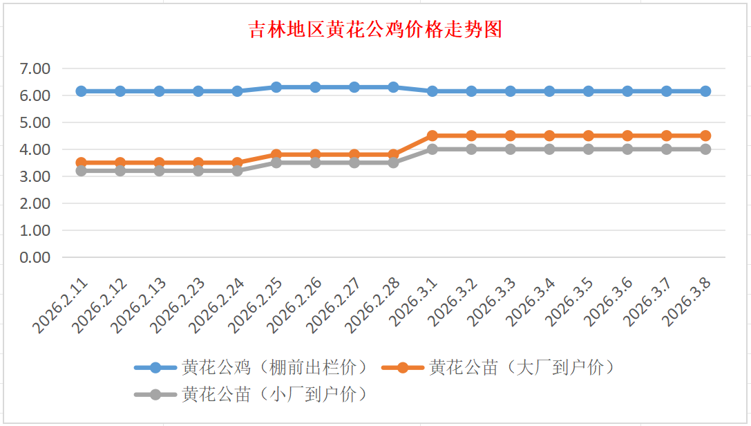 3月8日吉林黄花公鸡、鸡苗价格行情