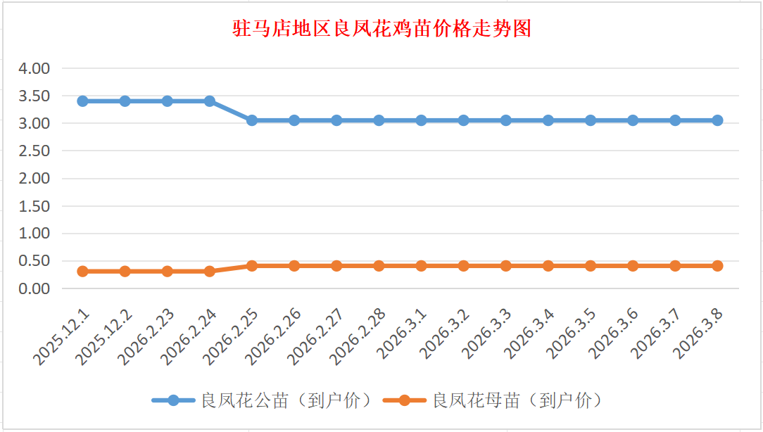 良凤花鸡苗:价格稳定,公苗到户价2.80-3.30元/羽,母苗到户价0.30-0.50元/羽,稳。