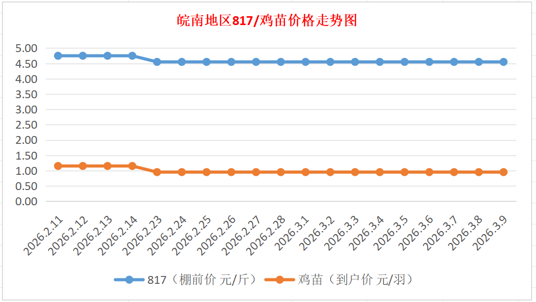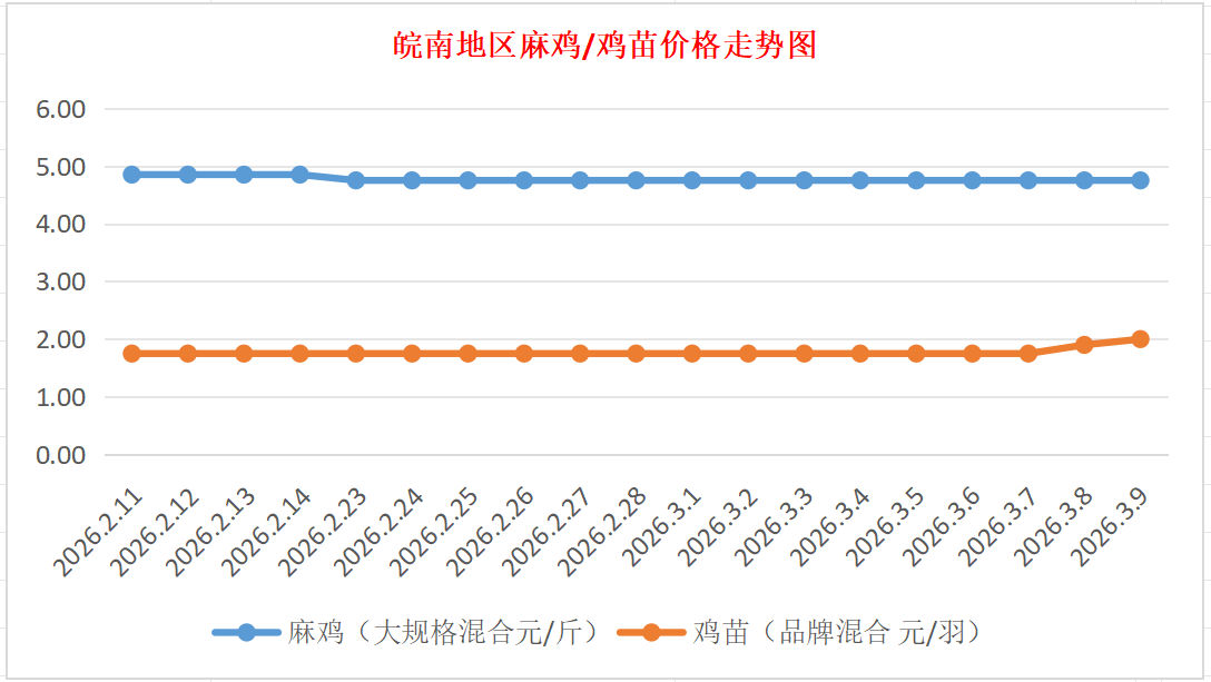 鸡病专业网独家信息:2026年3月9日皖南地区817-麻鸡行情最新走势