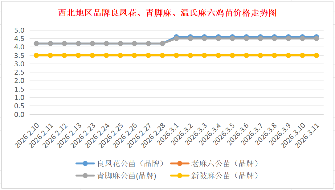 品牌新陂麻:价格稳定,到户价公苗4.50元/羽,稳。