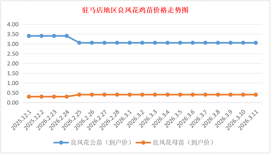 良凤花鸡苗:价格稳定,公苗到户价2.80-3.30元/羽,母苗到户价0.30-0.50元/羽,稳。