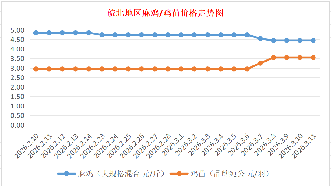 鸡病专业网独家信息:2026年3月12日皖北地区817-麻鸡行情最新走势