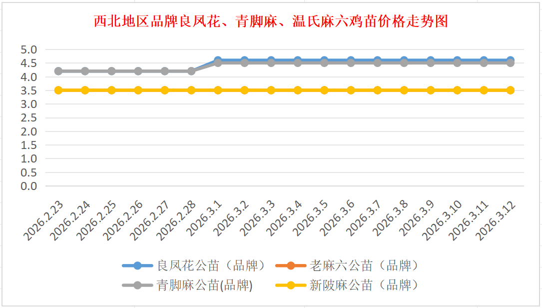 品牌新陂麻:价格稳定,到户价公苗4.50元/羽,稳。