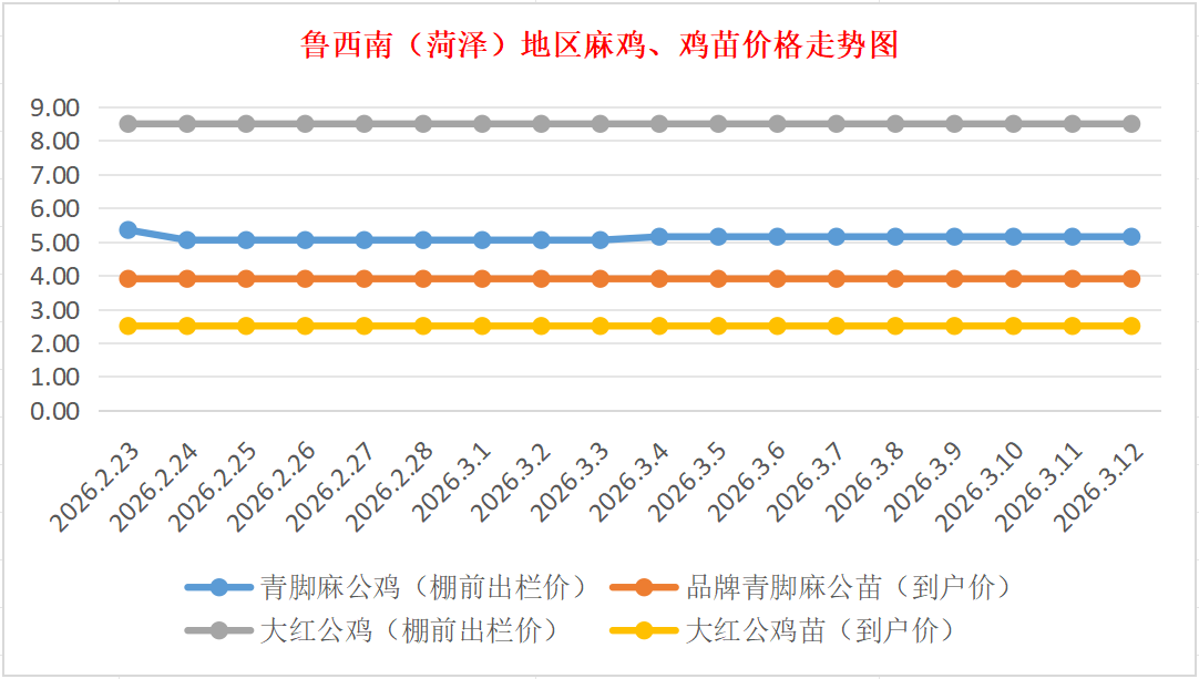 3月12日鲁西南(菏泽)地区麻鸡、鸡苗价格行情