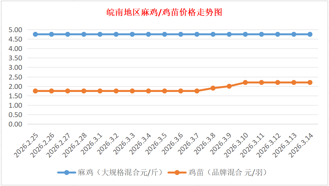 鸡病专业网独家信息:2026年3月14日皖南地区817-麻鸡行情最新走势