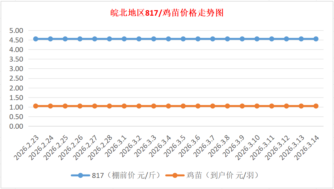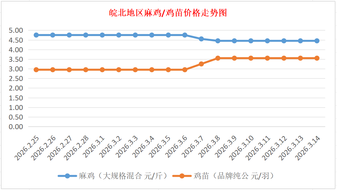 鸡病专业网独家信息:2026年3月14日皖北地区817-麻鸡行情最新走势