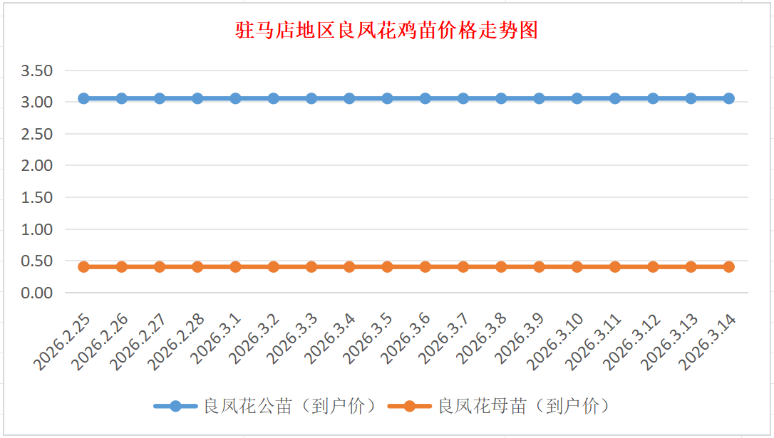 良凤花鸡苗:价格稳定,公苗到户价2.80-3.30元/羽,母苗到户价0.30-0.50元/羽,稳。