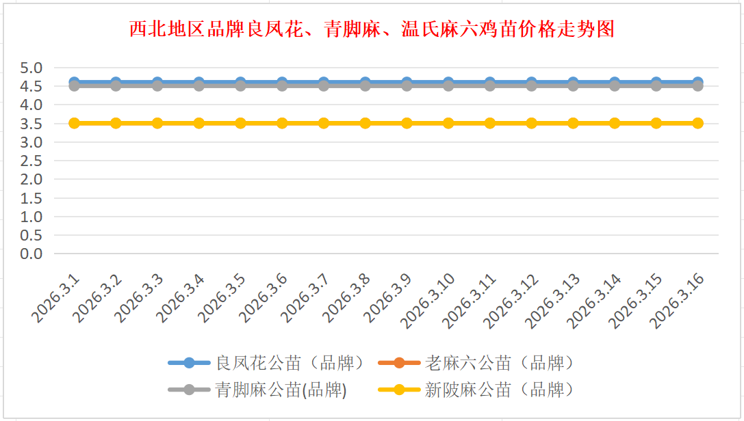 品牌新陂麻:价格稳定,到户价公苗4.50元/羽,稳。