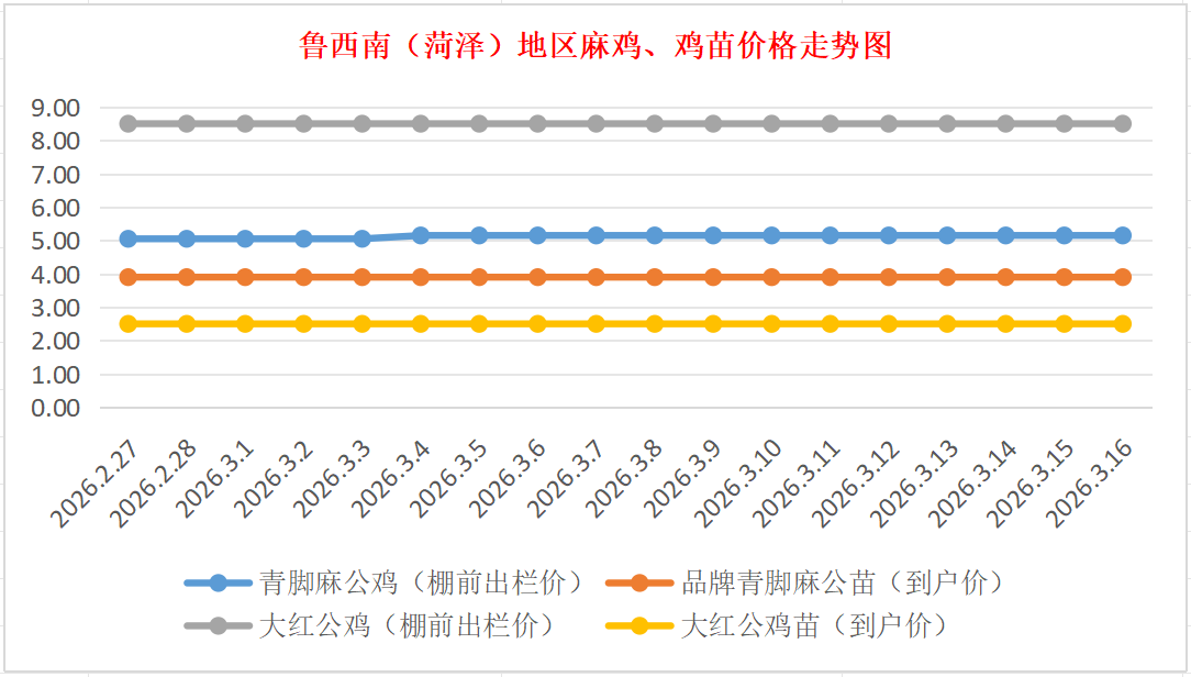 3月16日鲁西南(菏泽)地区麻鸡、鸡苗价格行情