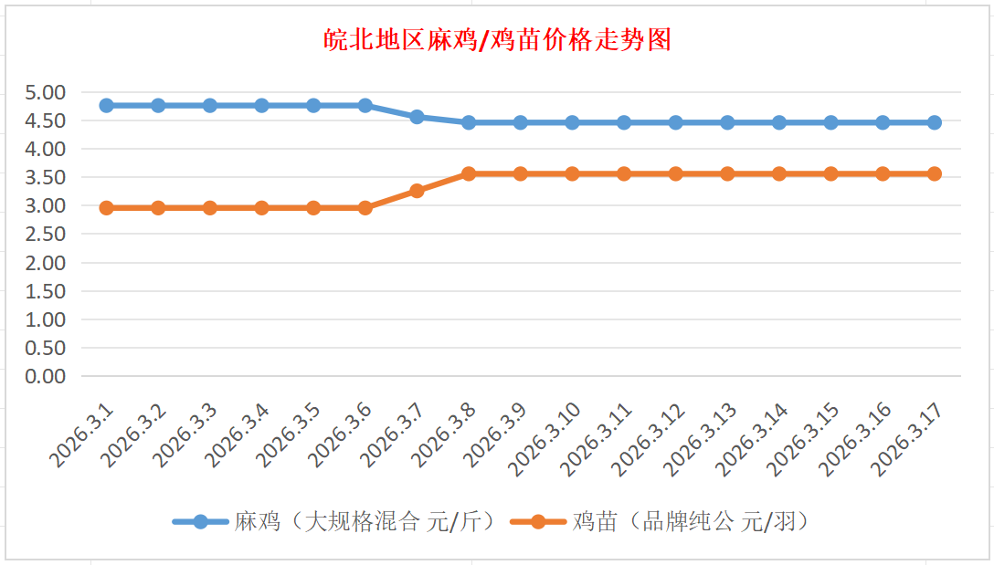 鸡病专业网独家信息:2026年3月17日皖北地区817-麻鸡行情最新走势