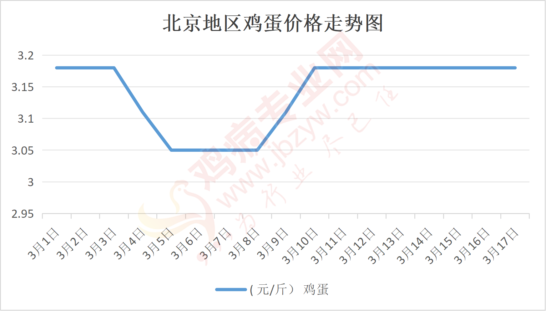 鸡病专业网消息:3月17日,北京各大市场鸡蛋价格维持稳定,主流参考价140元/44斤,石门,新发地、回龙观等主流批发价140元/44斤,稳;大洋路鸡蛋主流批发价格140元/44斤,稳,按质高低价均有,今日大洋路到车7台,走货一般。