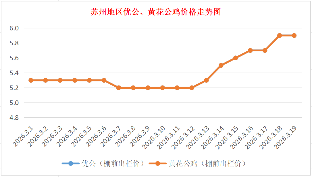 苏州地区优公、黄花公鸡价格走势图(来源:鸡病专业网)
