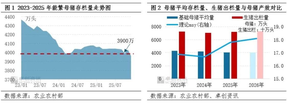 2026年国家政策力度继续加码,有望推进高成本产能去化进程,叠加2026年处于产能继续释放的一年,上半年养殖端或同时面临猪价长期磨底的亏损,以及饲料成本上涨的压力。2026年产能仍过剩或导致养殖盈利明显缩水,政策与市场供应过剩的局面或共同驱动母猪产能加速去化,结合成本与盈利预测数据,预计3-6月为加速去化期,7-9月转为缓慢去化。