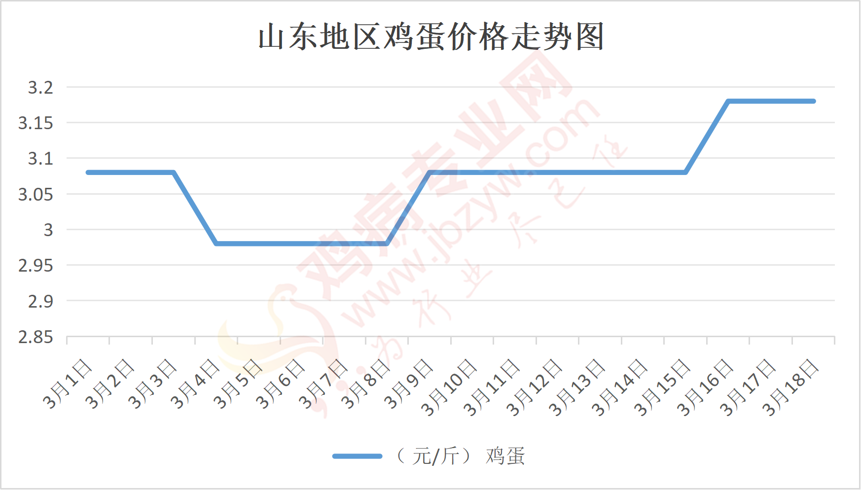 鸡病专业网消息:3月18日,山东地区莱阳鸡蛋3.2元/斤,稳;青岛鸡蛋3.2元/斤,稳;诸城鸡蛋3.25元/斤,稳;安丘鸡蛋3.1元/斤,稳;昌乐鸡蛋3.1元/斤,稳;寿光鸡蛋3.1元/斤,稳;昌邑鸡蛋3.1元/斤,稳;高密鸡蛋3.25元/斤,稳;青州鸡蛋3.1元/斤,稳;临朐鸡蛋3.1元/斤,稳;莱州鸡蛋3.2元/斤,稳;威海鸡蛋3.2元/斤,稳;临沭鸡蛋3.1元/斤,稳;沂水鸡蛋3.1元/斤,稳;沂南鸡蛋3.1元/斤,稳;莒南鸡蛋3.1元/斤,稳;兰陵县鸡蛋3.1元/斤,稳;日照鸡蛋3.1元/斤,稳;莒县鸡蛋3.1元/斤,稳;日照辛萁商贸鸡蛋3.1元/斤,稳;泗水鸡蛋价格93元/30斤,稳;济宁、汶上鸡蛋价格93元/30斤,稳;梁山、东平红蛋价格93元/30斤,稳;枣庄滕州地区鸡蛋混码主流到户94元/30斤,稳;泰安地区新泰鸡蛋价格93元/30斤,稳;菏泽地区曹县主流到户93元/30斤,稳;成武鸡蛋价格93元/30斤,稳;单县到户93元/30斤,稳;聊城莘县92元/30斤,稳;莱芜鸡蛋139元/45斤,稳;济南鸡蛋139元/45斤,稳;德州鸡蛋122元/40斤,稳;滨州鸡蛋122元/40斤,稳。