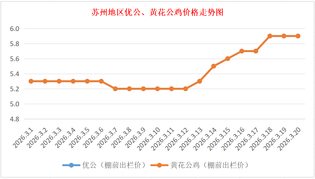 苏州地区优公、黄花公鸡价格走势图(来源:鸡病专业网)