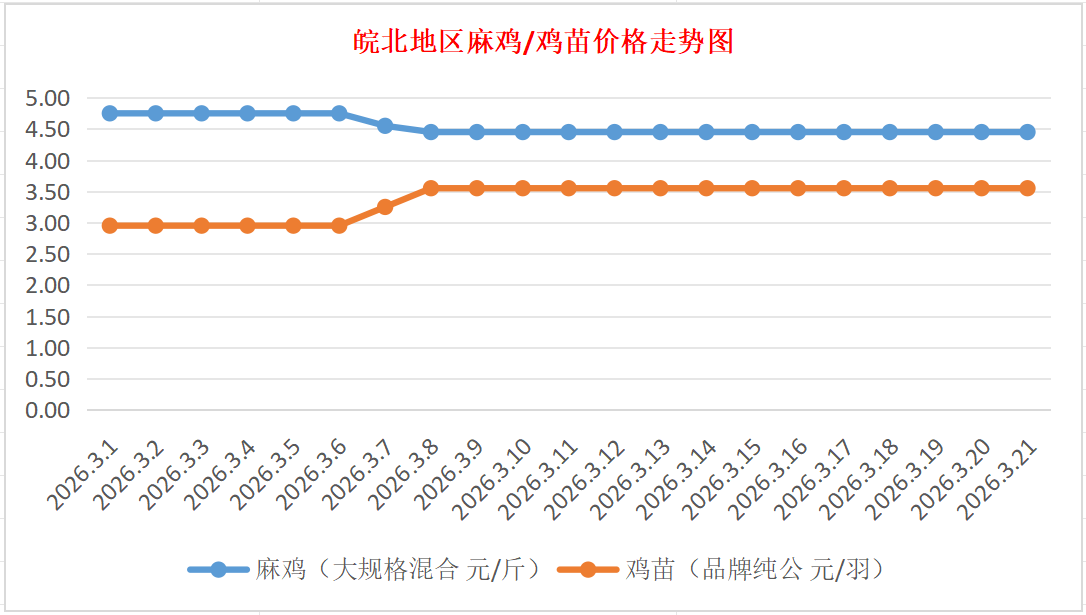 鸡病专业网独家信息:2026年3月21日皖北地区817-麻鸡行情最新走势