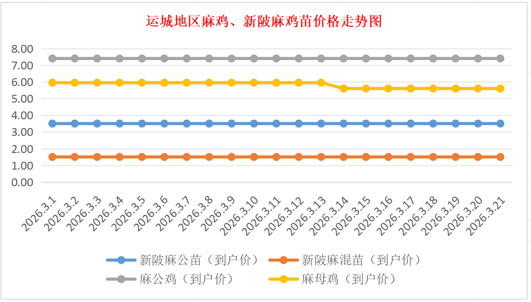 \运城地区麻鸡、新陂麻鸡苗价格走势图(来源:鸡病专业网)