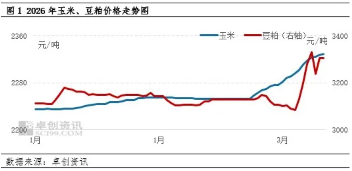 进入3月以来,饲料原料市场的变化将国际形势对国内养殖业的传导压力清晰呈现于行业面前。据卓创资讯监测数据显示,截至3月12日,玉米价格较月初涨幅超52元/吨,豆粕价格涨幅更为显著,超过了198元/吨。按照行业通用的料蛋比折算,仅此一轮原料价格上涨,就直接推高单斤鸡蛋养殖成本约0.093元。这一增量虽看似微小,但在行业利润本就微薄的当下,足以成为挤压盈利空间的关键变量。值得注意的是,本轮成本上涨带有鲜明的输入性特征——国际地缘政治格局演变、全球谷物贸易流重构、海运市场不确定性等因素交织作用,使得养殖主体面对的不再是熟悉的内生性周期,而是更加难以预判的外部变量。