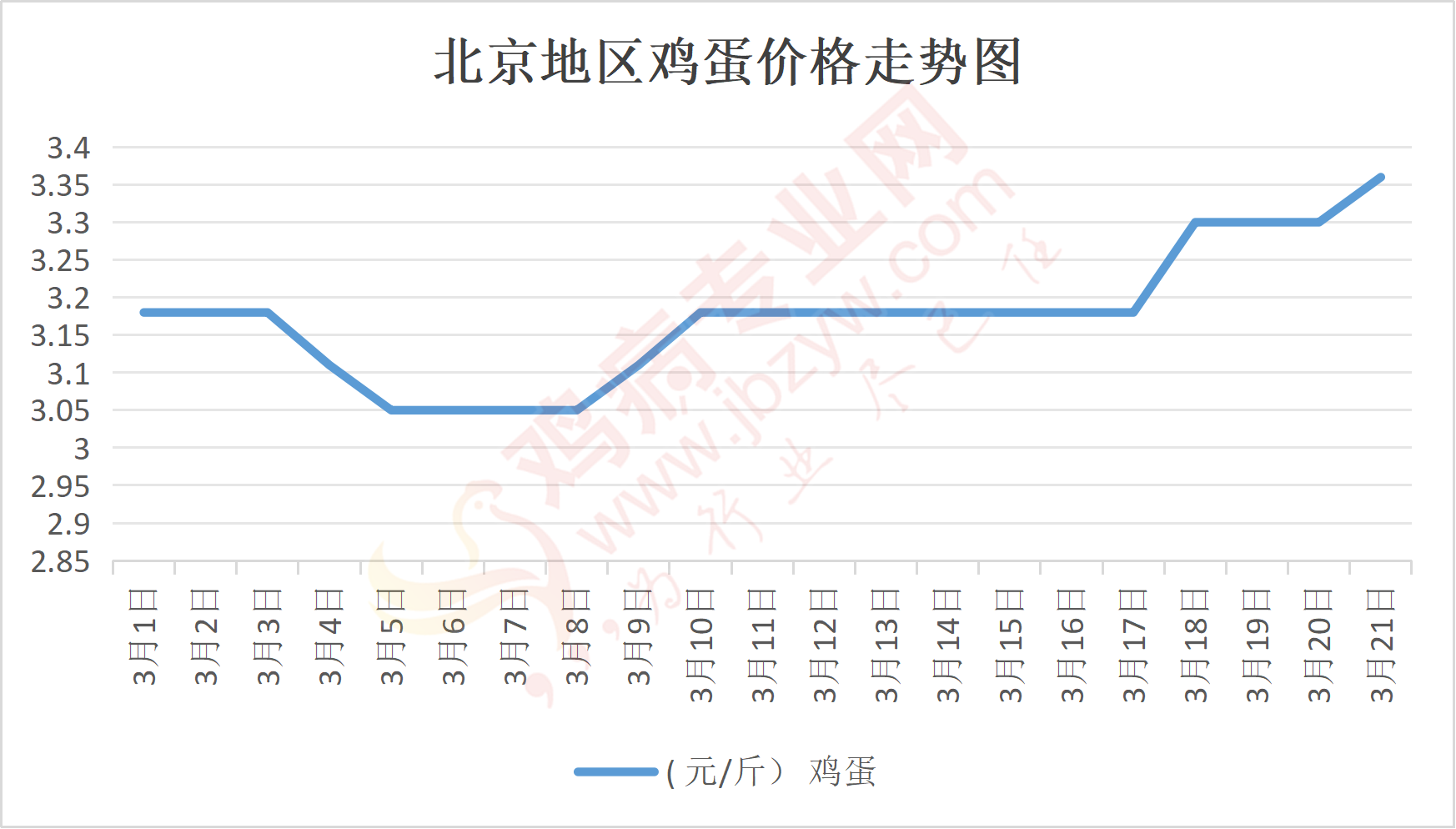 鸡病专业网消息:3月21日,北京各大市场鸡蛋价格维持稳定,主流参考价148元/44斤,石门,新发地、回龙观等主流批发价148元/44斤,涨;大洋路鸡蛋主流批发价格148元/44斤,涨,按质高低价均有,走货一般。