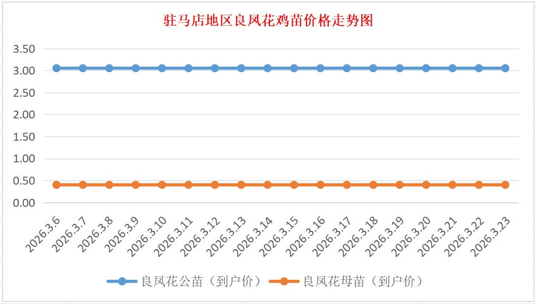 良凤花鸡苗:价格稳定,公苗到户价2.80-3.30元/羽,母苗到户价0.30-0.50元/羽,稳。