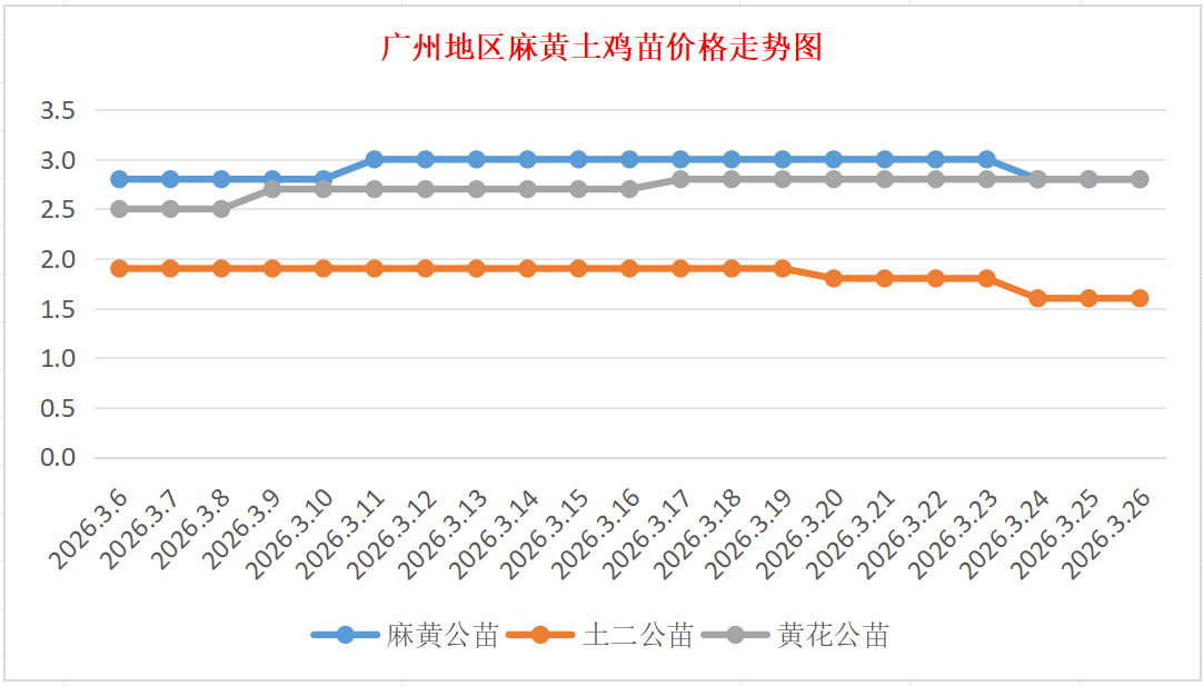 黄花公苗:价格稳定,竹料本地销售价2.80元/羽,稳。