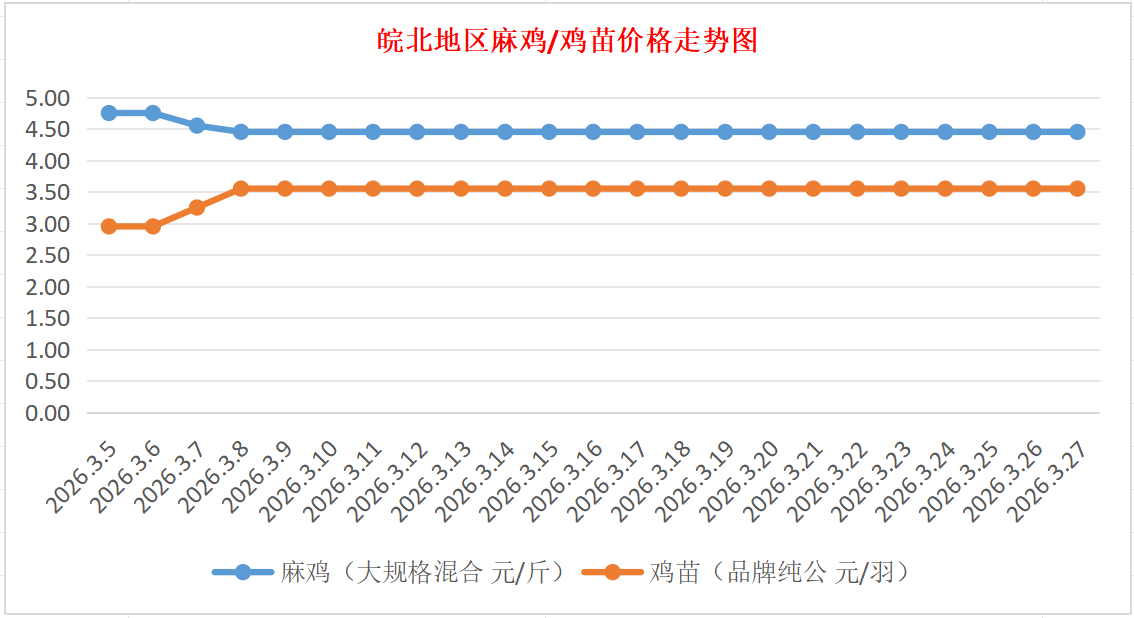 鸡病专业网独家信息:2026年3月27日皖北地区817-麻鸡行情最新走势