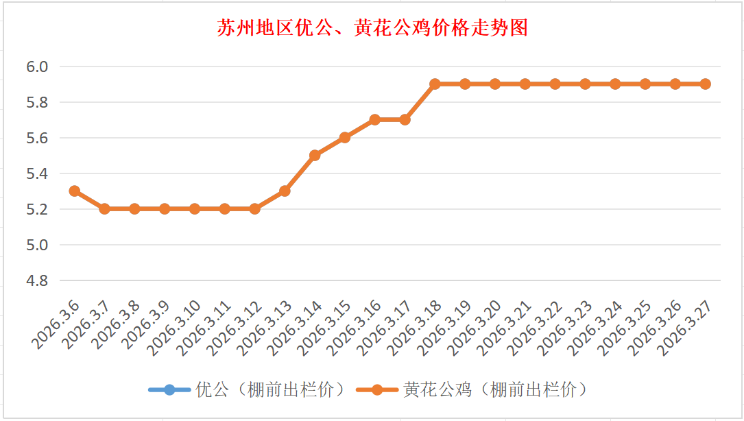 苏州地区优公、黄花公鸡价格走势图(来源:鸡病专业网)