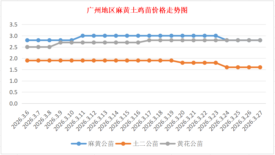 黄花公苗:价格稳定,竹料本地销售价2.80元/羽,稳。