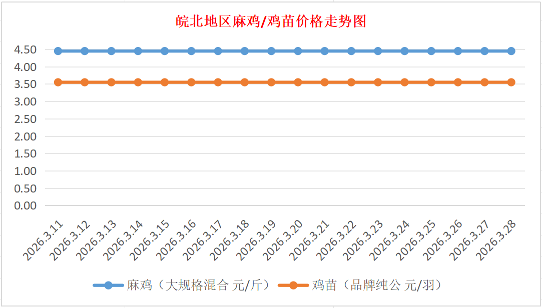 鸡病专业网独家信息:2026年3月28日皖北地区817-麻鸡行情最新走势