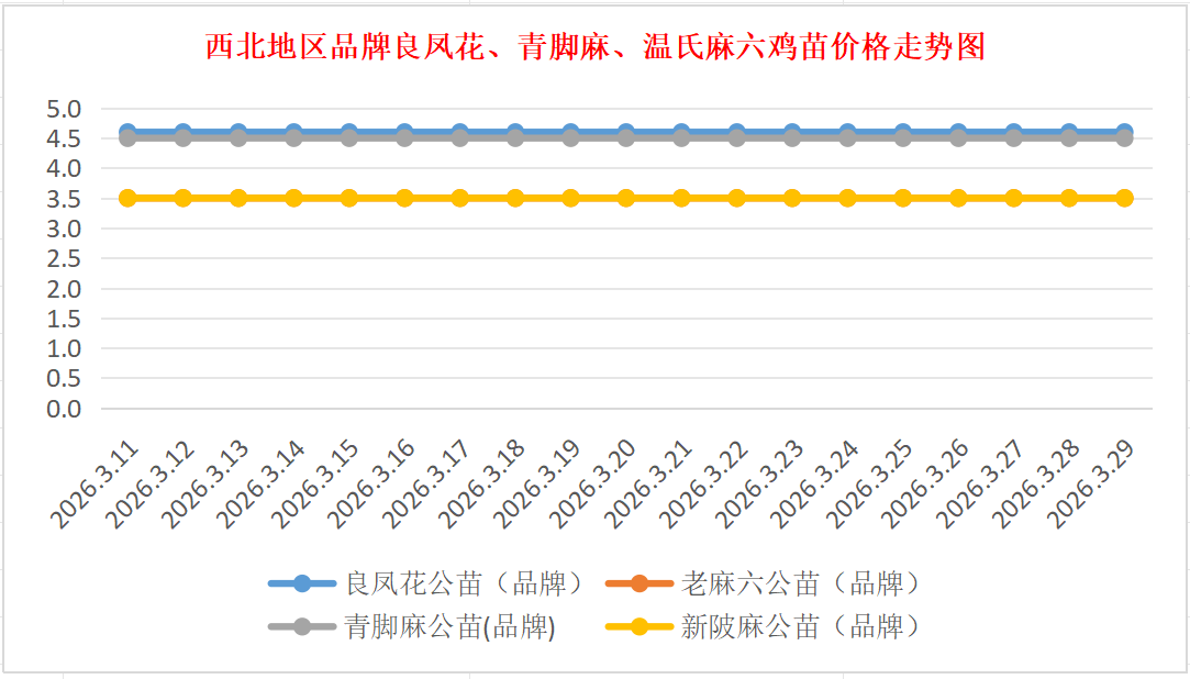 品牌新陂麻:价格稳定,到户价公苗4.50元/羽,稳。
