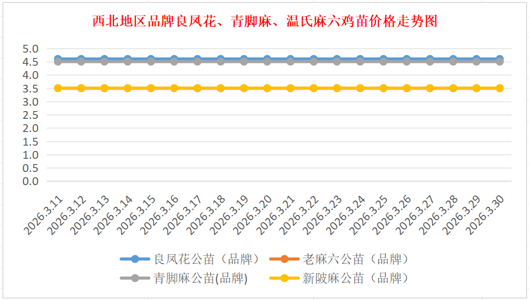 品牌新陂麻:价格稳定,到户价公苗4.50元/羽,稳。